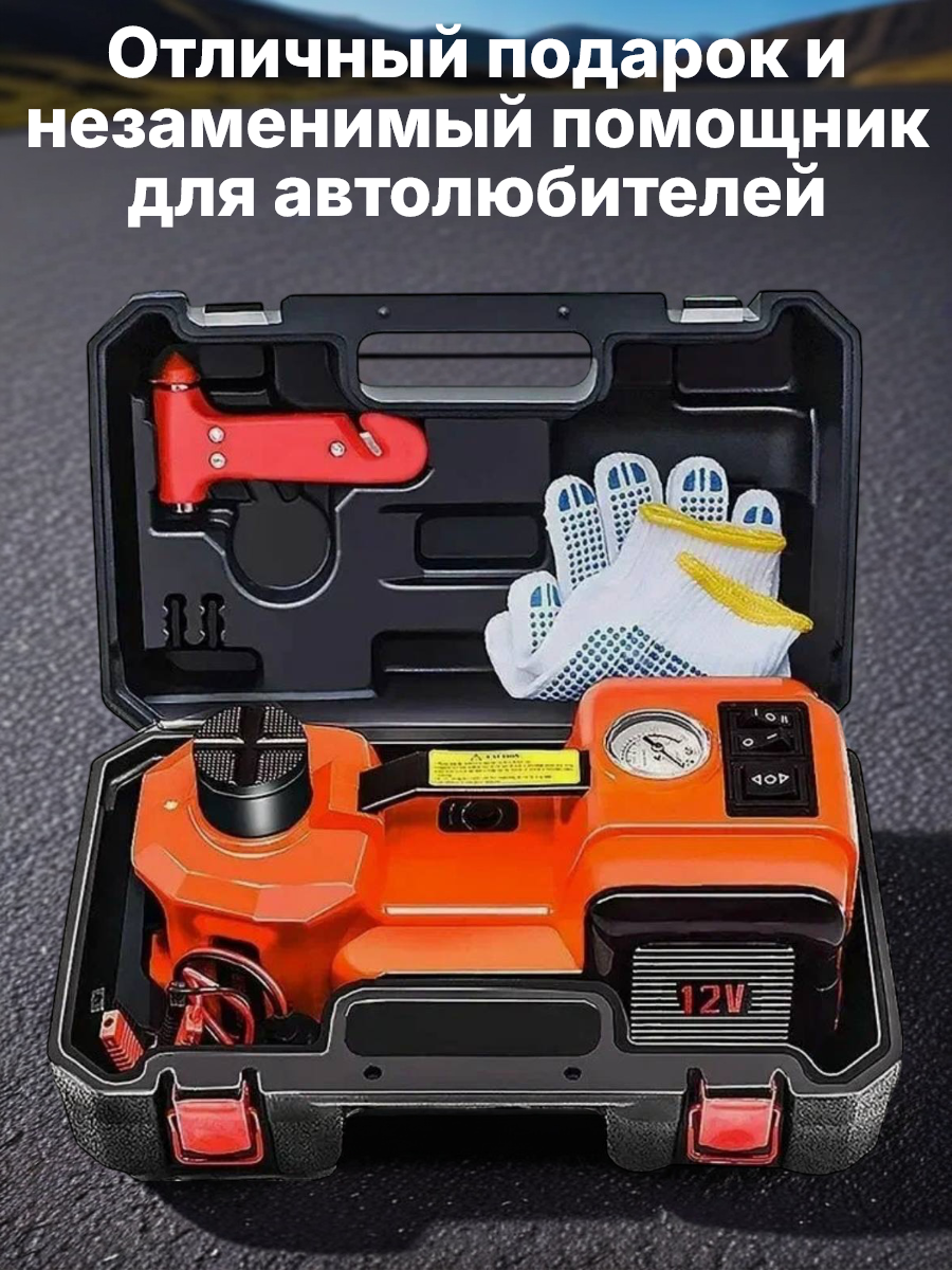 Электрический домкрат с компрессором 3 в 1: домкрат, компрессор и фонарь.