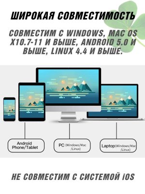 - Не совместим с системой iOS. Для подключения мобильного телефона/планшета на базе Android мобильный телефон/планшет должен иметь интерфейс Type-C или Micro-USB и поддерживать функцию OTG.