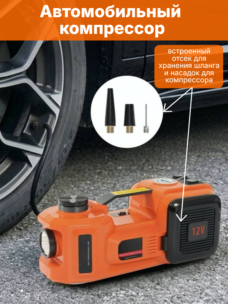 Электрический домкрат с компрессором 3 в 1: домкрат, компрессор и фонарь.